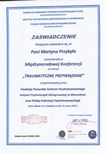 Pani Martyna jest bardzo empatyczną osobą a przy tym bardzo pogodną i sympatyczną. Sesje nie są sztywne, nie krępuje się o niczym mówić. Dodatkowo czuję że mogę używać swobodnego języka podczas wizyty, nie muszę zastanawiać się jak coś powiedzieć żeby było to dobrze zrozumiane. Po każdej wizycie wychodzę z większą dozą pokory i empatii dla samej siebie. Bardzo serdecznie polecam.