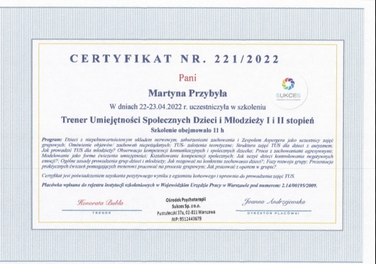 Pierwsze spotkanie przebiegło bardzo dobrze. Pani Martyna była miła oraz zaangażowana.