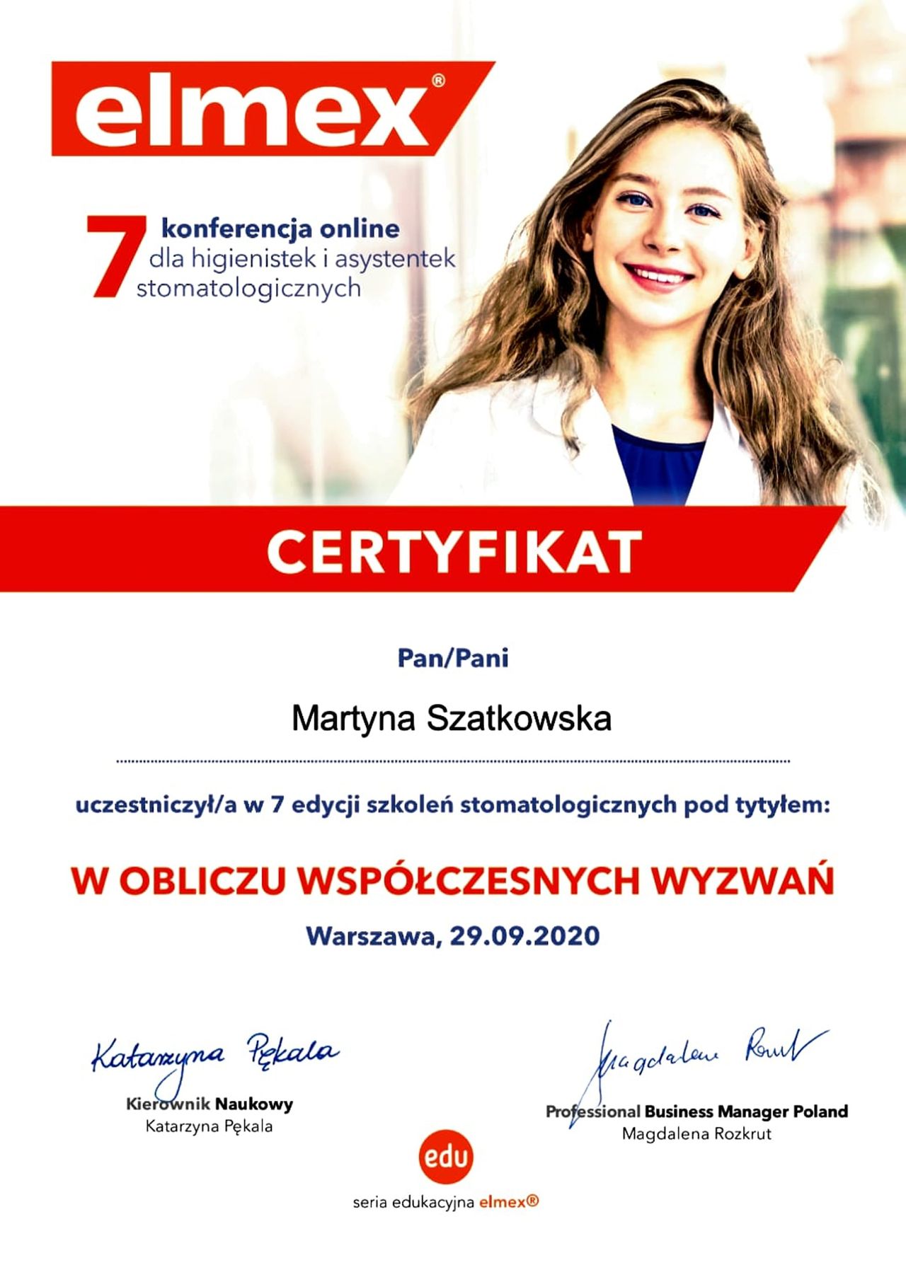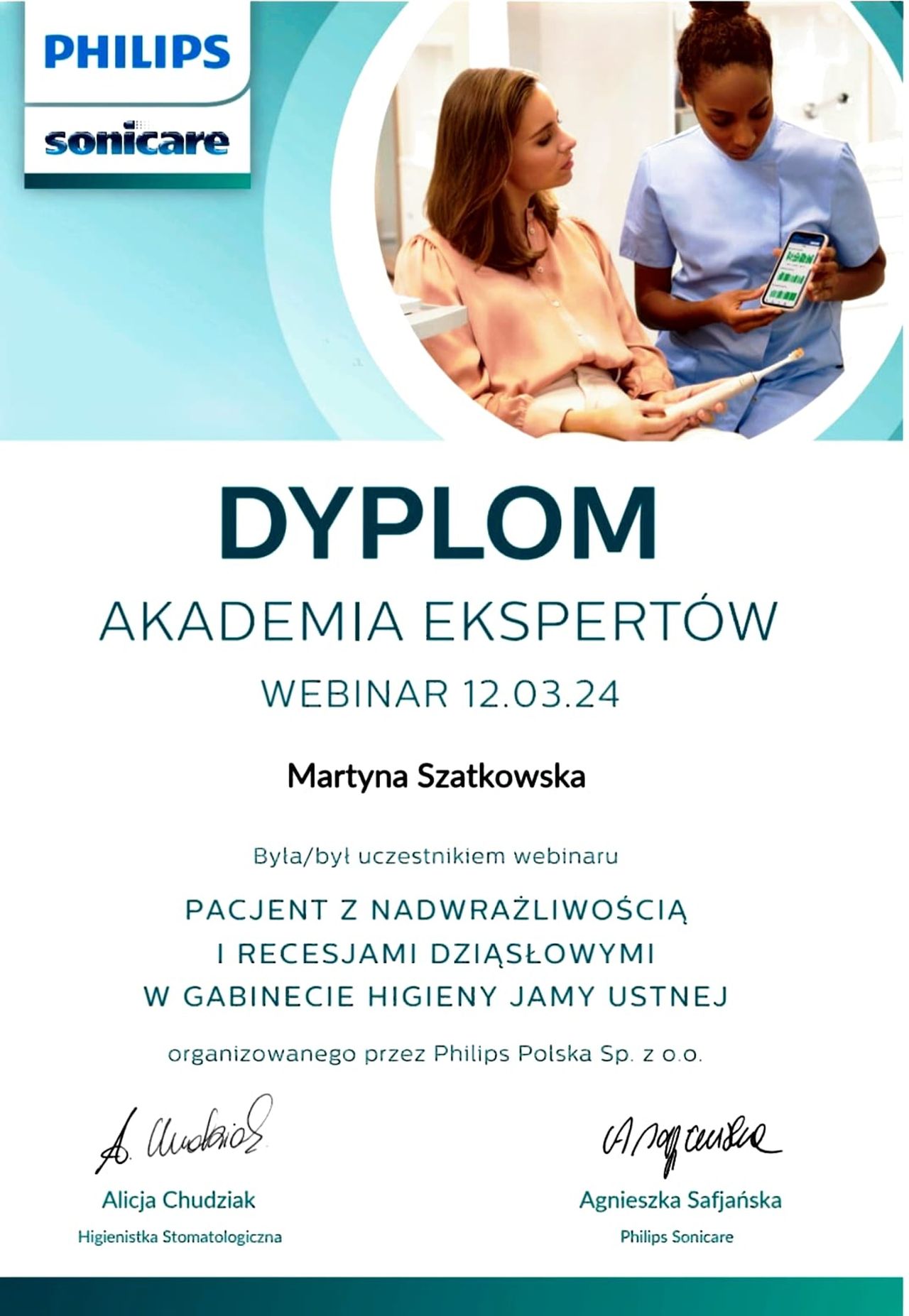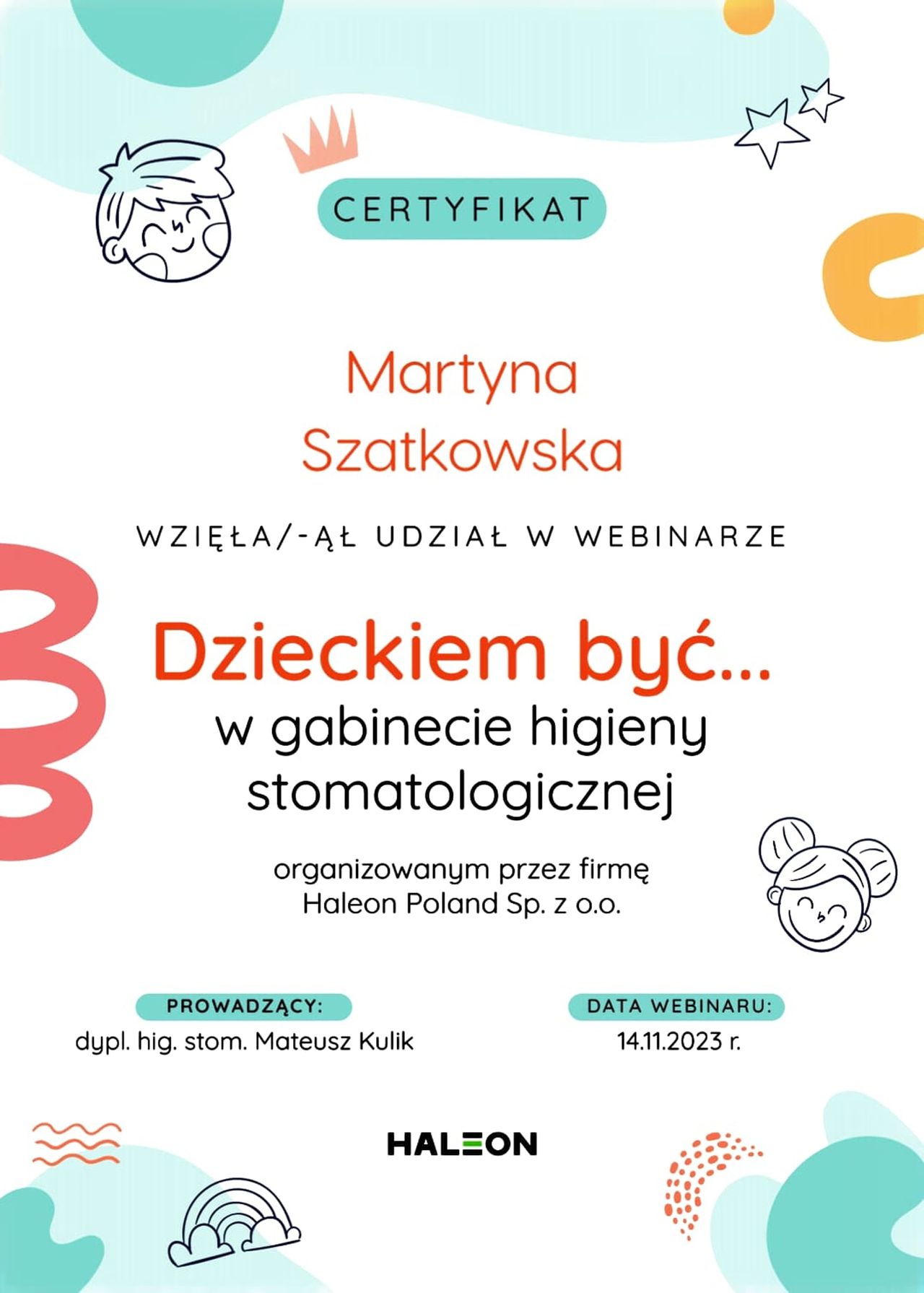 Stale podnoszę swoje kwalifikacje, uczestnicząc w szkoleniach i kursach z zakresu profilaktyki oraz nowoczesnych metod dbania o zdrowie jamy ustnej.