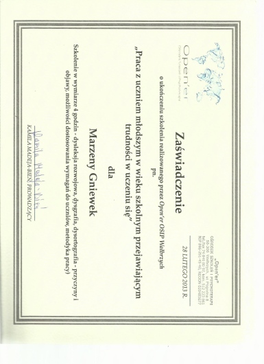 Miałam przyjemność korzystać z psychoterapii u Pani Marzeny przez półtora roku. Już od pierwszych spotkań poczułam się wysłuchana i zrozumiana. Pani Marzena z dużą empatią i profesjonalizmem pomogła mi trafnie zrozumieć źródło moich trudności, a jej wsparcie okazało się nieocenione w najtrudniejszych momentach. Dzięki wspólnej pracy udało mi się odstawić leki i odnaleźć większą równowagę w codziennym życiu.