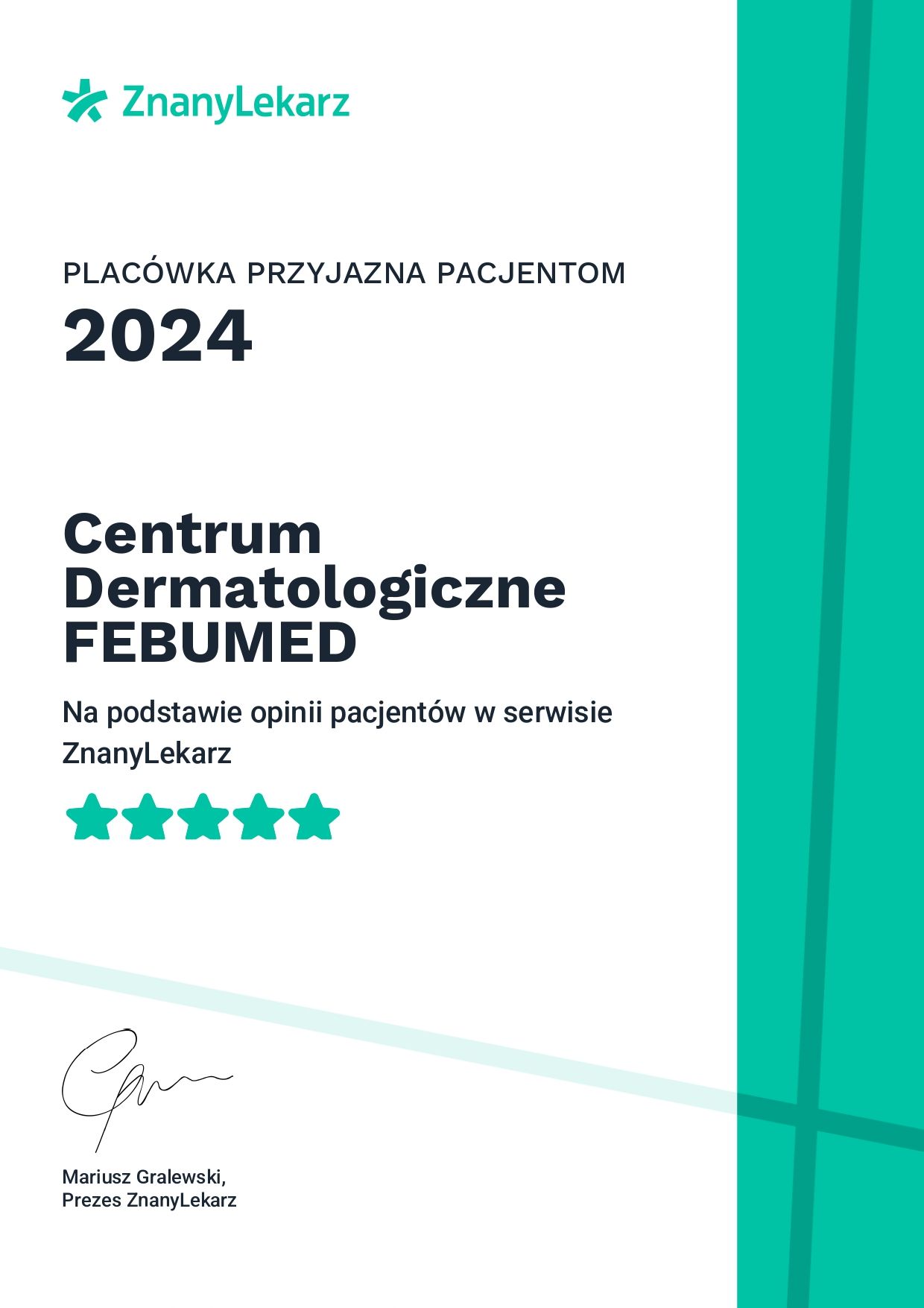 Mam doskonałe podejście do najmłodszych pacjentów - jestem cierpliwy, wyrozumiały i potrafię w sposób delikatny i spokojny przeprowadzić je przez cały proces leczenia. Współpraca z ich opiekunami jest dla mnie równie ważna, ponieważ to oni odgrywają kluczową rolę w procesie leczenia, a ja staram się ich wspierać na każdym etapie, tłumacząc szczegóły leczenia i odpowiadając na pytania.