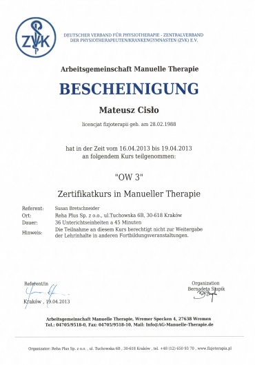 Polecam, fizjoterapia przynosi efekty a to najważniejsze.