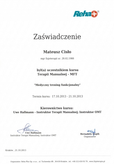 Jako pacjent uważam że diagnoza i dopasowanie ćwiczeń pod kątem mojego schorzenia są bardzo celne, a efekty widoczne już po pierwszej wizycie.