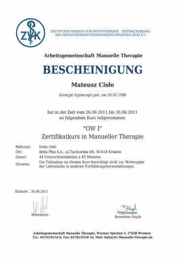 Przeprowadzi dokładny wywiad oraz diagnostykę funkcjonalną na której to podstawie przeprowadzi terapię.