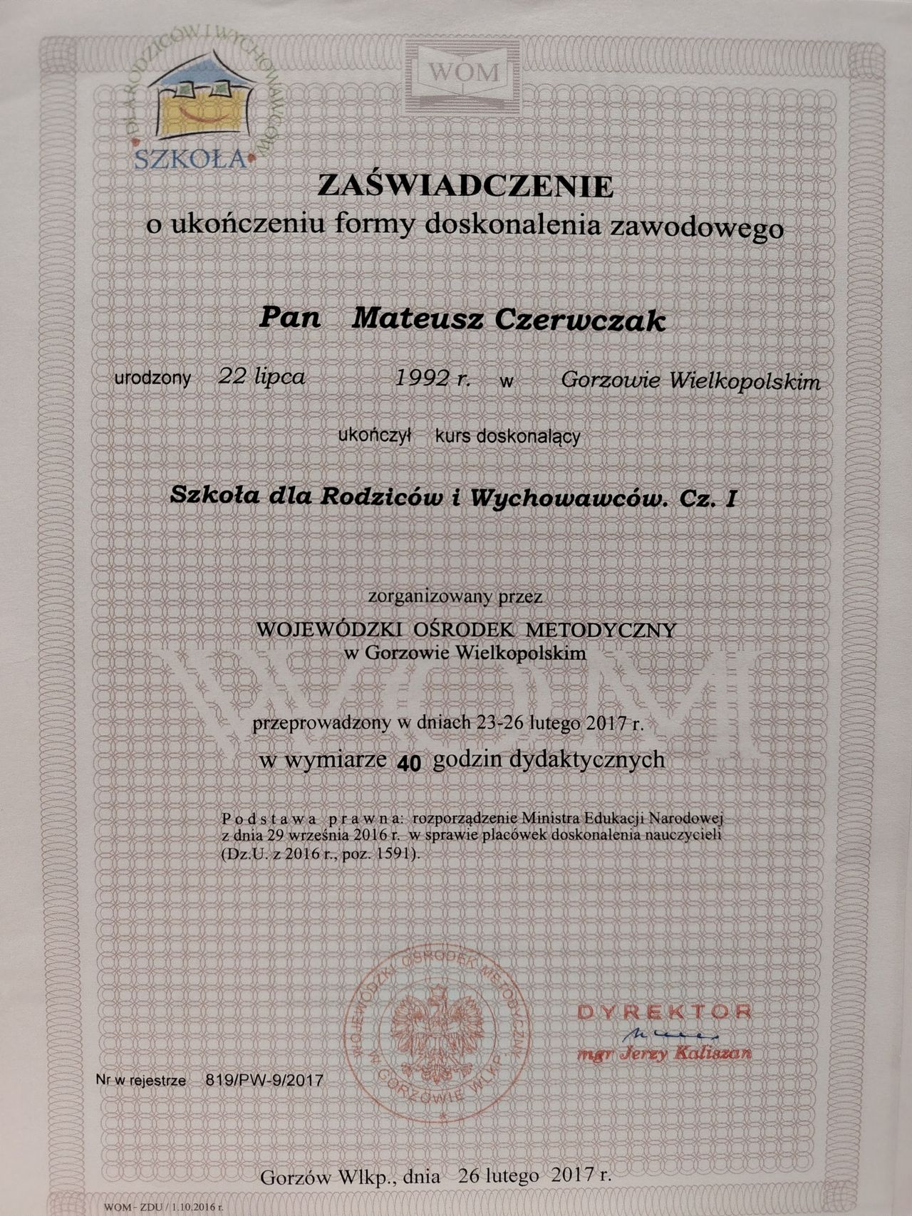 Pracowałem również jako psycholog orzecznik oraz prowadziłem liczne edycje programu „Szkoła dla Rodziców”.