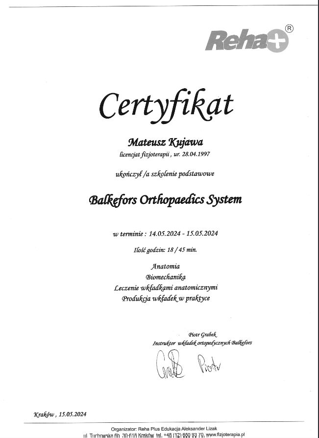 Jaki jest zakres porad oferowanych przez Mateusz Kujawa?Mateusz Kujawa to fizjoterapeuta. Na podstawie swojego doświadczenia i wykształcenia Mateusz Kujawa oferuje usługi takie jak: konsultacja fizjoterapeutyczna, konsultacja fizjoterapeuty - rehabilitacja manualna (pierwsza wizyta), masaż klasyczny, Stan ostry - masaż leczniczy, Stan ostry - Fizjoterapia.