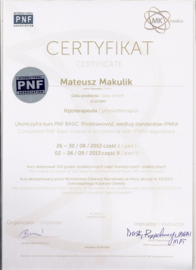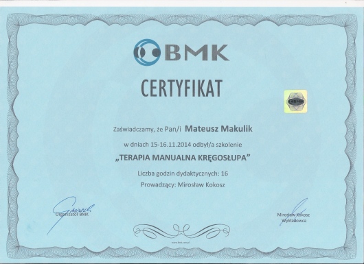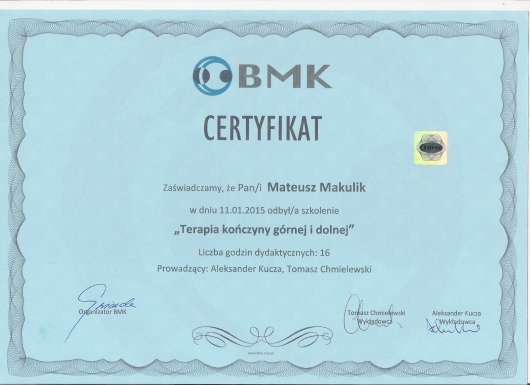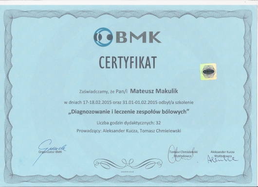 Mateusza Makulika jako fizjoterapeutę znam od wielu lat i jest jednym z najbardziej profesjonalnych i doświadczonych osób w zawodzie z jakimi miałam doczynienie. Pomógł mi wyjść z nie jednego problemu podchodząc do niego uważnie i kompleksowo, a przy tym nigdy nie zabrakło u niego empatii do pacjenta. Serdecznie polecam!