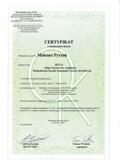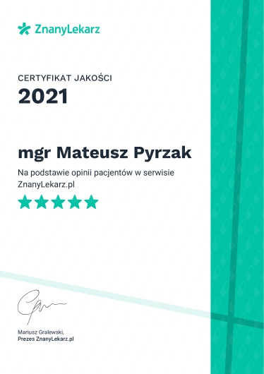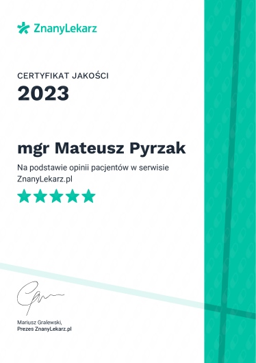 Witam Cię! Nazywam się Mateusz Pyrzak – jestem magistrem fizjoterapii i od ponad 14 lat pomagam Pacjentom w odzyskiwaniu sprawności i ulgi w bólu.