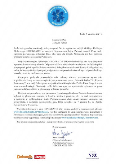 Od zawsze moją ambicją była praca z drugim człowiekiem i niesienie pomocy. Tym bardziej jestem szczęśliwy, że wykonuję właśnie ten zawód – zawód fizjoterapeuty, w którym mogę się realizować i spełniać.