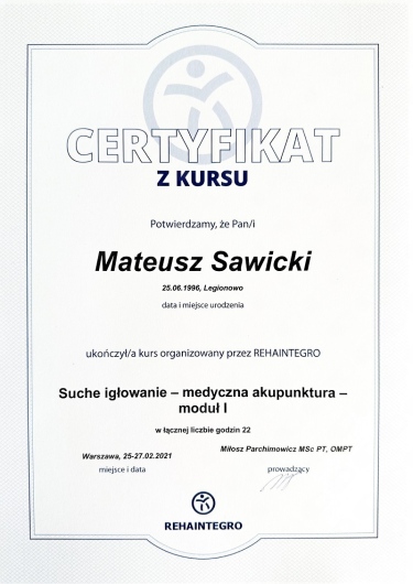 Przyjazne podejście do pacjenta. Dobra komunikacja. Szczegółowo pokazuje ćwiczenia, doradza co można czego nie. Byłem u wielu fizjoterapeutów i pierwszy raz spotkałem się z takim podejściem. Może to dlatego że jest młody i jeszcze się nie wypalił, a może dlatego że już ma takie podejście do życia ciężko stwierdzić, ale jestem zadowolony z wizyty i tak po drugim spotkaniu wykupiłem pakiet kolejnych 10 bo warto.