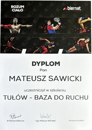 Polecam współpracę z Panem Mateuszem. To profesjonalny, motywujący do działania fizjoterapeuta. Przy kolejnych wizytach doskonale pamięta co człowiekowi dolega. Dopasowuje ćwiczenia do możliwośc pacjenta i potrafi zmotywować do aktywności. Dobrze działa nie tylko na mięśnie i stawy, ale także na ducha ;)