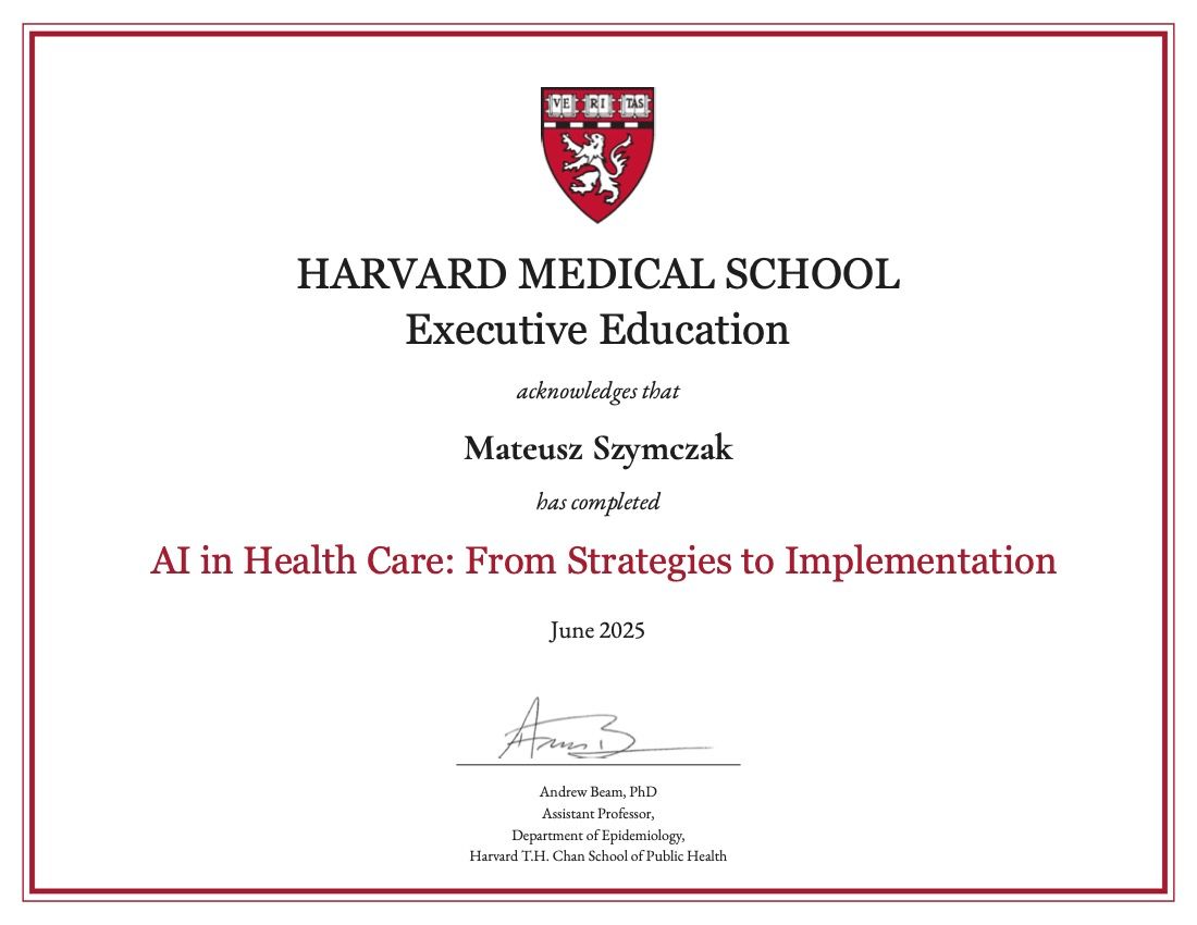 AI in Health Care: From Strategies to Implementation, Harvard Medical School - Executive Education, Boston, USA, czerwiec 2025