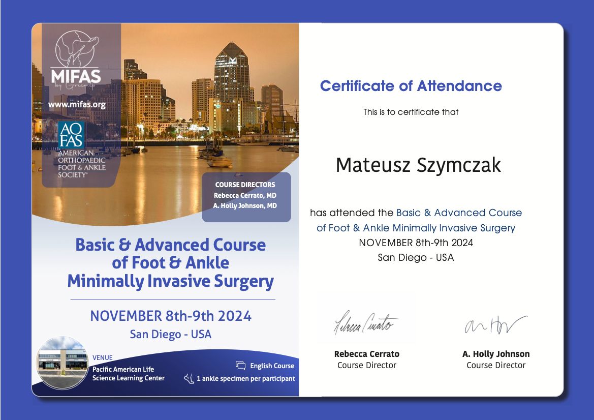 Basic & Advanced Course of Foot & Ankle Minimally Invasive Surgery, San Diego, USA, listopad 2024