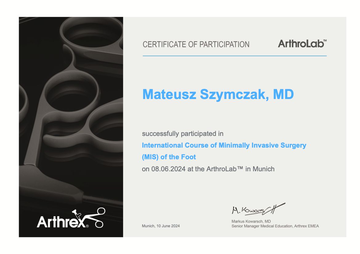 Arthrex International Course of Minimally Invasive Surgery (MIS) of the Foot, Monachium, Niemcy, czerwiec 2024