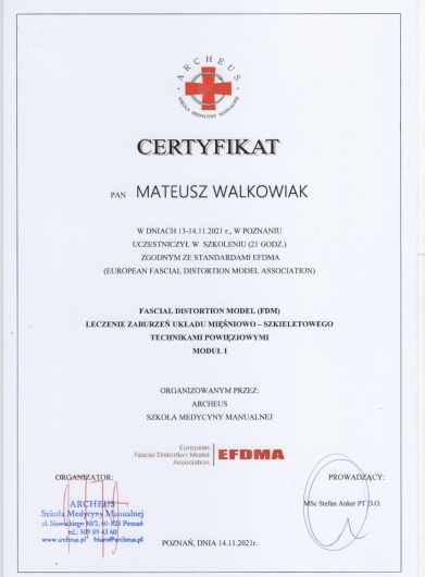 W swojej pracy stosuję głównie połączenie technik powięziowych i terapii manualnej dobierając je odpowiednio do indywidualnego body language. Pracuję głównie z osobami dorosłymi.