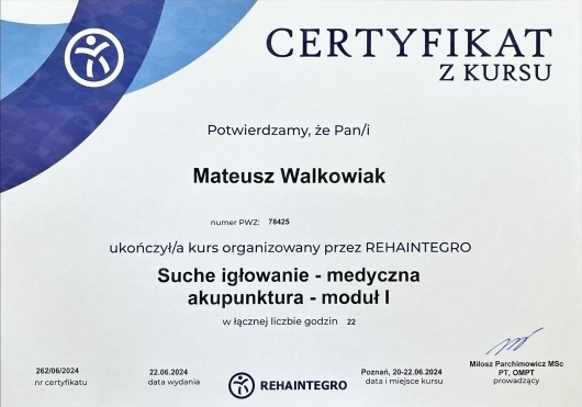 Gdzie Mateusz Walkowiak ma swój gabinet?Mateusz Walkowiak przyjmuje pod adresem: