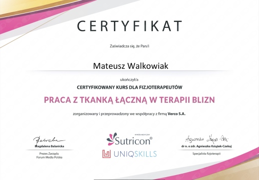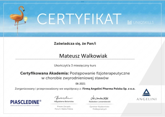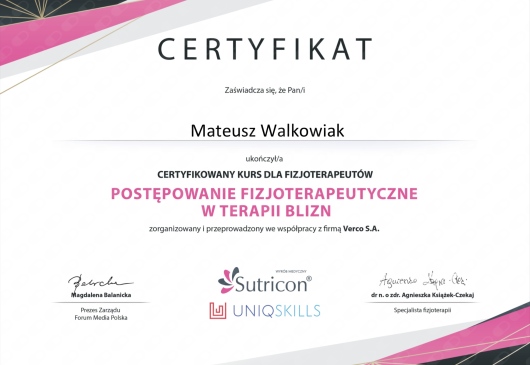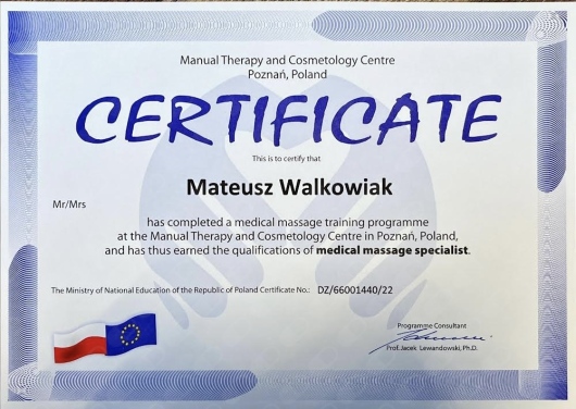 Jaki jest zakres porad oferowanych przez Mateusz Walkowiak?Mateusz Walkowiak to fizjoterapeuta. Na podstawie swojego doświadczenia i wykształcenia Mateusz Walkowiak oferuje usługi takie jak: konsultacja fizjoterapeutyczna, fizjoterapia, Terapia manualna, masaż klasyczny, masaż tkanek głębokich, terapia mięśniowo-powięziowa, ćwiczenia korekcyjne, konsultacja fizjoterapeutyczna (pierwsza wizyta), rehabilitacja ortopedyczna, masaż relaksacyjny.
