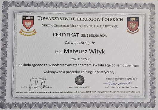 Jestem pacjentem dr Wityka. Wykonywał on operację bariatryczną dodatkowo z operacją przepukliny. Wspaniały człowiek i oddany lekarz. Operacja pobiegła przemyślnie, stała opieka i kontakt. Z całego serca polecam