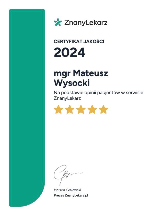 *** Szanowni Pacjenci, informuję, że dla cykli terapeutycznych rozpoczętych po 1 lutego 2026 obowiązywać będzie nowy cennik usług. Wszystkie cykle rozpoczęte przed tą datą będą realizowane według starego cennika aż do czasu ich zakończenia. ***