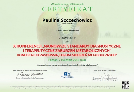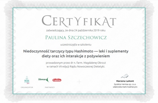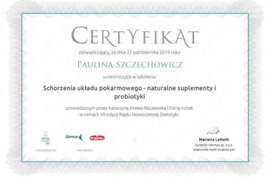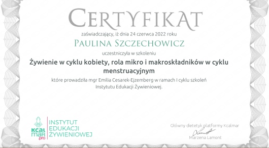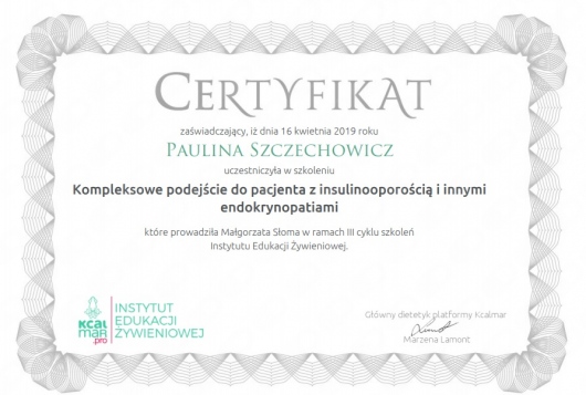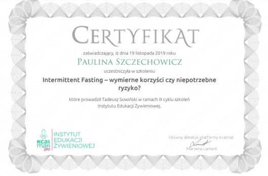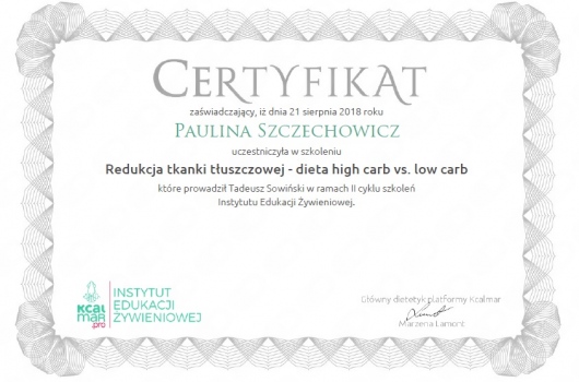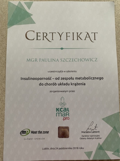 Jestem dietetykiem klinicznym i sportowym z ponad 15-letnim doświadczeniem zawodowym, absolwentką dietetyki na Wydziale Lekarskim II Uniwersytetu Medycznego w Poznaniu oraz studiów podyplomowych z zakresu Żywienia i wspomagania dietetycznego w sporcie w Akademii Wychowania Fizycznego w Warszawie. Specjalizuję się w przygotowywaniu indywidualnych jadłospisów opartych na dogłębnym wywiadzie żywieniowym obejmującym stan zdrowia, tryb życia oraz preferencje smakowe. Posiadam tytuł Specjalisty przyjaznego Insulinoopornym.