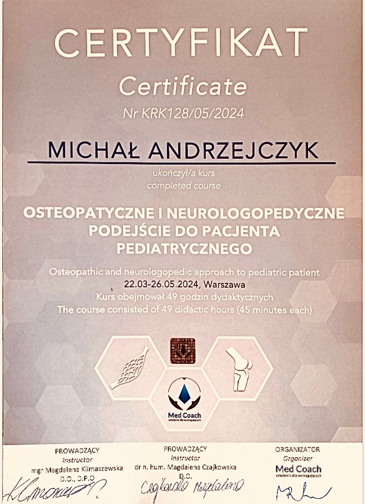 Byliśmy już dwa razy na wizycie u Pana Michała z naszym miesięcznym dzieckiem. Jesteśmy bardzo zadowoleni z przebiegu wizyty i z delikatnego podejścia do naszego dziecka (i do naszej towarzyszącej dwulatki również :) ). Po wizycie zauważyliśmy poprawę, a to jest najważniejsze.
