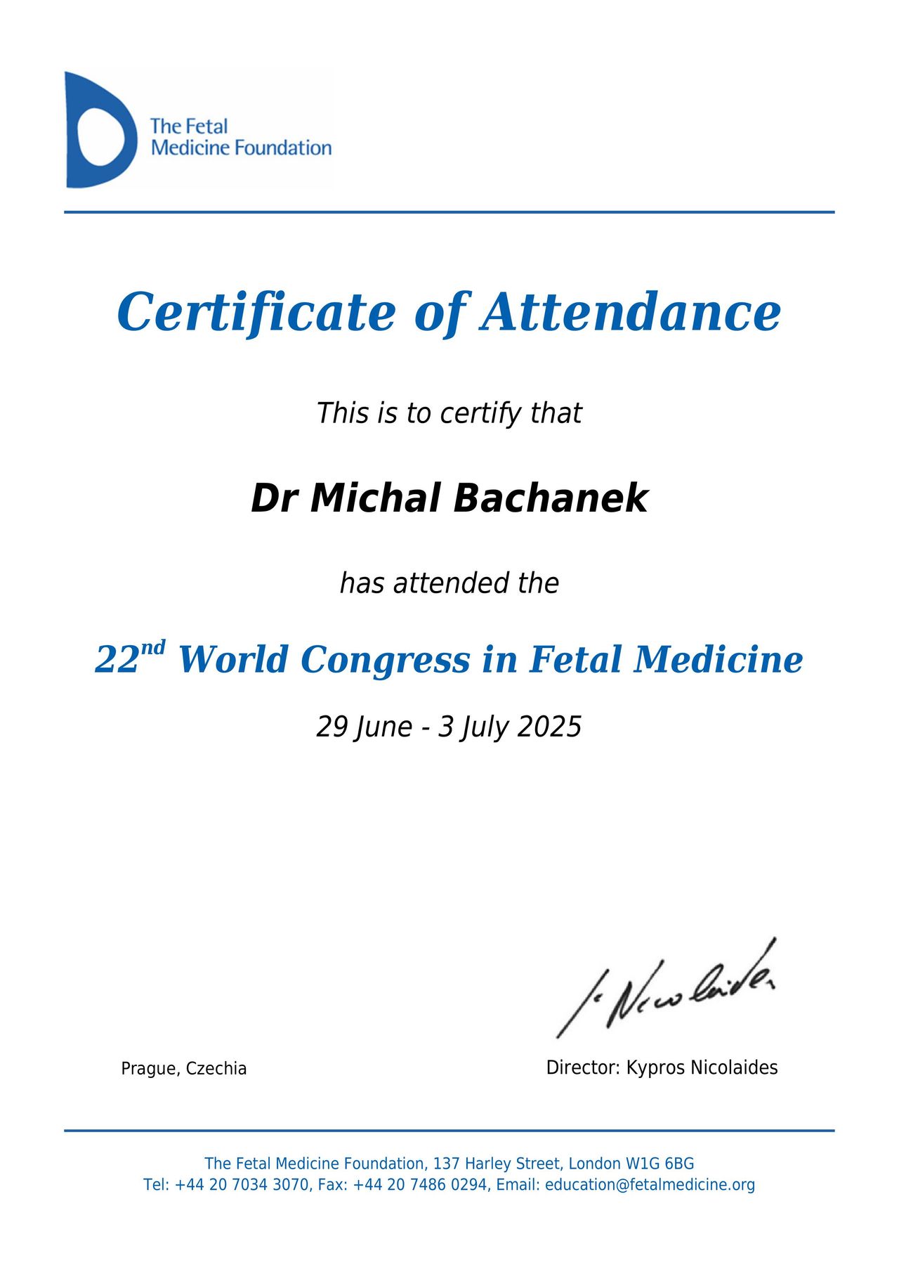 - Certyfikowany ultrasonolog ( certyfikaty badań USG Fetal Medicine Foundation oraz Sekcji Ultrasonografii Polskiego Towarzystwa Ginekologicznego)