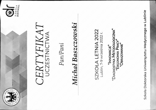 Ukończone kursy i szkolenia: