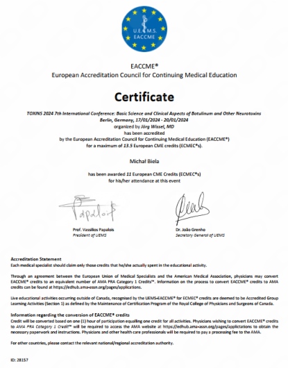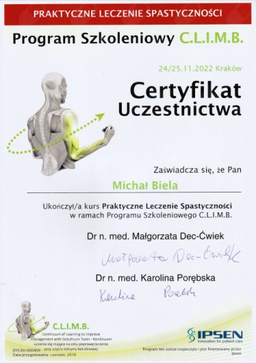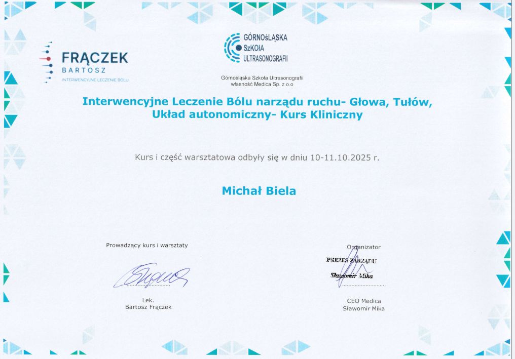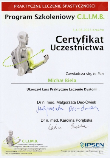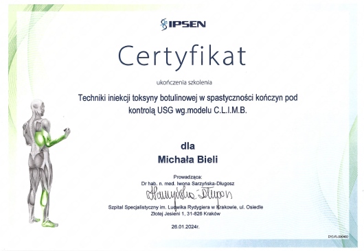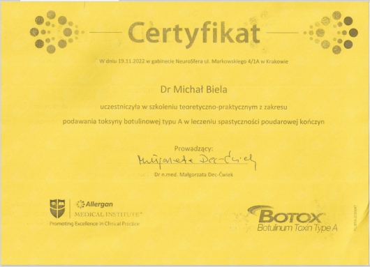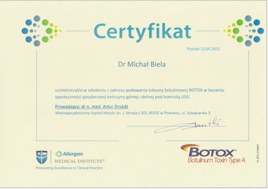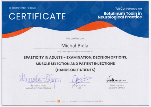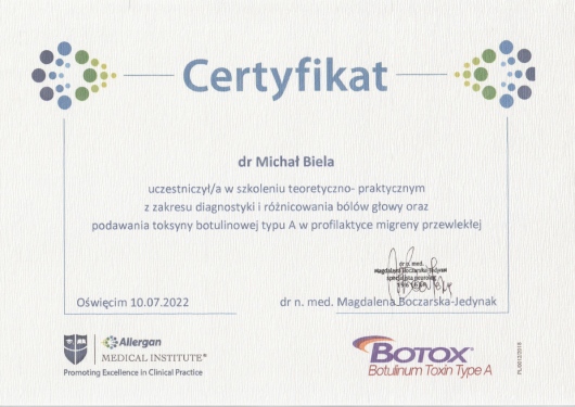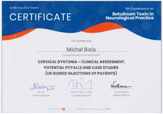 Posiadam doświadczenie w leczeniu migreny przewlekłej, spastyczności poudarowej i dystonii ogniskowych toksyną botulinową. Podania leku realizowane są pod kontrolą USG.