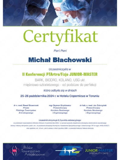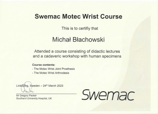 i Traumatologii Narządu Ruchu, realizując specjalizację na Oddziale Urazowo-Ortopedycznym Szpitala Powiatowego im. Romana Drewsa