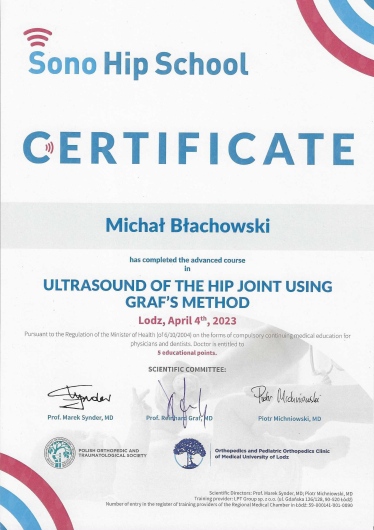 Prowadzę diagnostykę ultrasonograficzną narządu ruchu zgodnie ze standardami Roztoczańskiej Szkoły Ultrasonografii poświadczone certyfikatem.