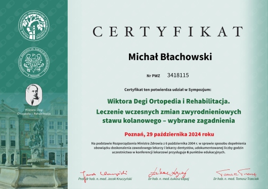Jaki jest zakres porad oferowanych przez Michał Błachowski?Michał Błachowski to ortopeda. Na podstawie swojego doświadczenia i wykształcenia Michał Błachowski oferuje usługi takie jak: konsultacja ortopedyczna.
