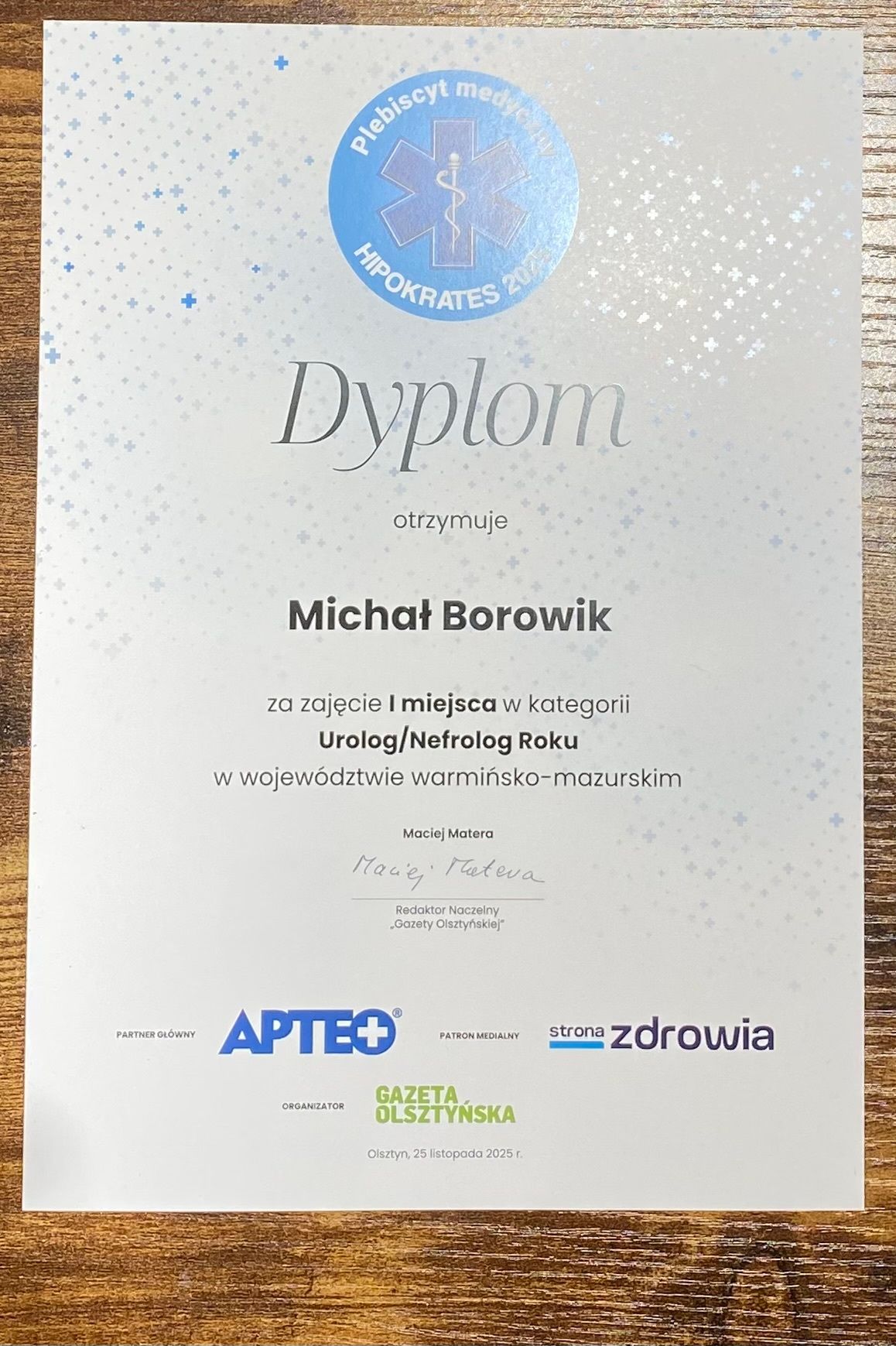 Z pełnym przekonaniem wystawiam najwyższą ocenę panu doktorowi Michałowi Borowik. To lekarz z ogromną wiedzą, doświadczeniem i – co równie ważne – z wyjątkowym podejściem do pacjenta. Wizyta przebiegła w spokojnej, życzliwej atmosferze. Pan doktor dokładnie przeprowadził wywiad, wszystko szczegółowo wytłumaczył i odpowiedział na każde moje pytanie z cierpliwością i zaangażowaniem. Badanie zostało wykonane profesjonalnie i delikatnie, z zachowaniem pełnego komfortu pacjenta. Widać, że pan doktor traktuje swoją pracę z pasją i pełnym oddaniem, a pacjenta – z szacunkiem i empatią. Dzięki trafnej diagnozie i odpowiedniemu leczeniu moje dolegliwości szybko zaczęły ustępować. Wreszcie poczułem, że jestem w dobrych rękach i mogę zaufać lekarzowi w 100%.