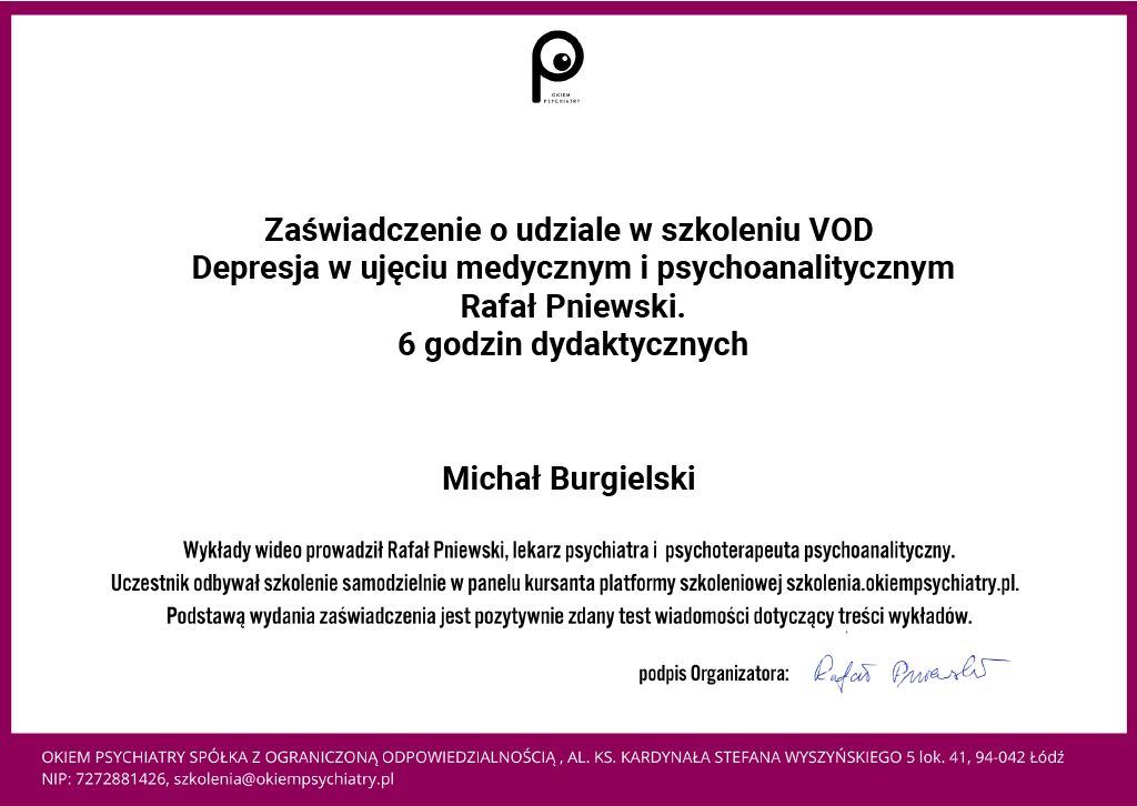 • MICHAŁ BURGIELSKI ( Konsultacje online) • konsultacja psychoterapeutyczna online •