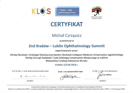 Moje wykształcenie zdobyłem na Wydziale Lekarskim Collegium Medicum Uniwersytetu Jagiellońskiego w Krakowie, a specjalizację realizowałem w renomowanych ośrodkach klinicznych Śląskiego Uniwersytetu Medycznego w Katowicach oraz Klinice Okulistyki i Onkologii Okulistycznej Szpitala Uniwersyteckiego w Krakowie.
