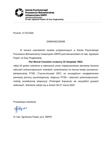 • Michał Ciesielski Gabinet Psychologiczno - Seksuologiczny • psychoterapia indywidualna online •