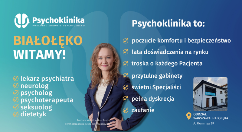 Miło nam poinformować, że Psychoklinika prężnie się rozwija. Nasi lekarze psychiatrzy, psycholodzy przyjmują już w Oddziale BIAŁOŁĘKA. Jak zawsze w oddziałach Psychokliniki możecie Państwo znaleźć zespół doświadczonych ekspertów: psychiatrę, psychologa, psychoterapeutę, logopedę, dietetyka, neurologa, czy seksuologa. Nie inaczej jest również w naszym najnowszym oddziale zlokalizowanym przy ul. Aleksandra Fleminga 29 na Warszawskiej Białołęce.