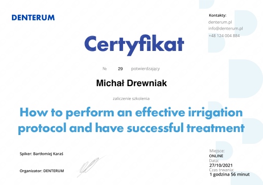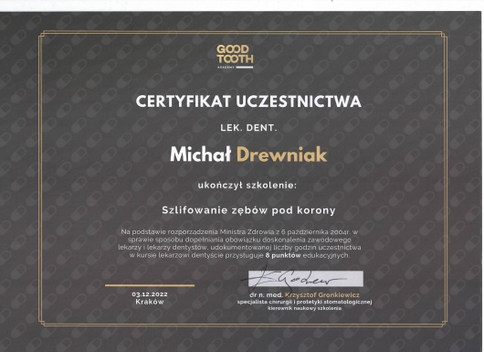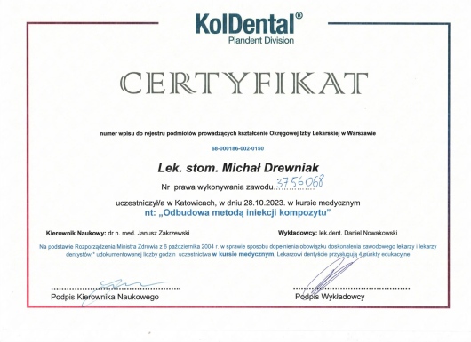 To była moja pierwsza wizyta u Pana doktora Michał Drewniak, ale będą kolejne (leczenie)..profesjonalne podejście i dokładne wyjaśnienie procesu leczenia sprawiły, że z przyjemnością podejmę dalsze leczenie u Pana Doktora. Dziękuję i pozdrawiam również Panią Asystentkę oraz Miłe Panie z Recepcji.
