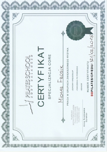 Od najmłodszych lat jestem związany ze sportem. Uzyskałem certyfikat Instruktora Sportu Wushu, trenera personalnego specjalizacji Core oraz instruktora Pilates. Ze względu na duże doświadczenia sportowe i przebyte kontuzje jestem w stanie lepiej zrozumieć specyfikę dysfunkcji osób aktywnych fizycznie.