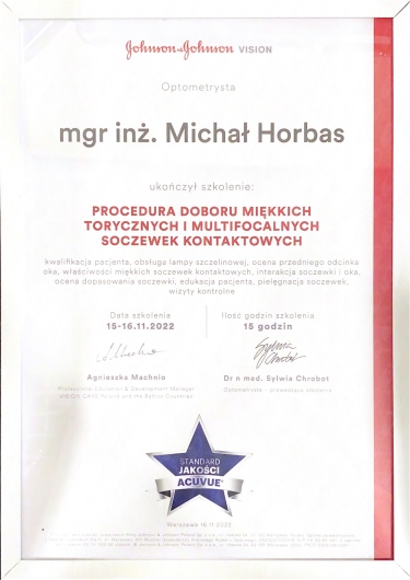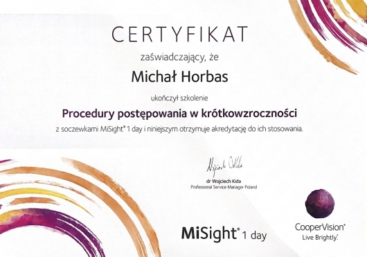 Jaki jest zakres porad oferowanych przez Michał Horbas?Michał Horbas to optometrysta. Na podstawie swojego doświadczenia i wykształcenia Michał Horbas oferuje usługi takie jak: badanie wzroku u dzieci, Badanie wzroku + dobór okularów, Badanie oraz dobór soczewek kontaktowych, Wizyta kontrolna po badaniu wzroku, Badanie wzroku dzieci z doborem soczewek kontaktowych, Wizyta kontrolna dzieci po badaniu wzroku, Konsultacja optometryczna.