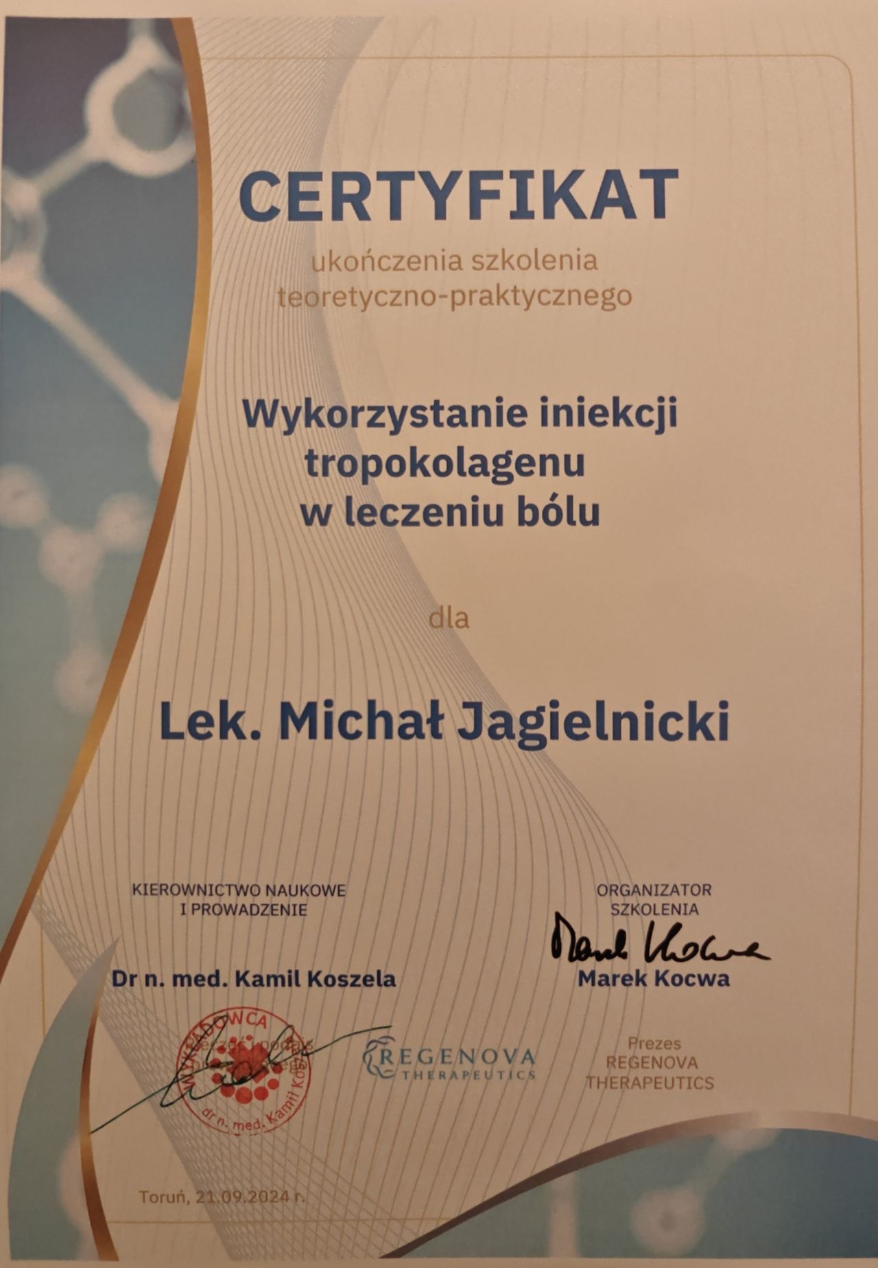 Jaki jest zakres porad oferowanych przez Michał Jagielnicki?Michał Jagielnicki to w trakcie specjalizacji (ortopeda), lekarz wykonujący zabiegi medycyny estetycznej. Na podstawie swojego doświadczenia i wykształcenia Michał Jagielnicki oferuje usługi takie jak: konsultacja ortopedyczna + USG, iniekcja osocza bogatopłytkowego z kwasem z hialuronowym, Iniekcja z osocza bogatopłytkowego – PRP, Podanie kwasu hialuronowego do stawu, iniekcja dostawowa leku CINGAL 88MG/4ML kwas hialuronowy (konsultacja + preparat), Wizyta domowa, Iniekcja z kwasu hialuronowego, iniekcja Diprohos, leczenie blizn i rozstępów, leczenie łysienia.