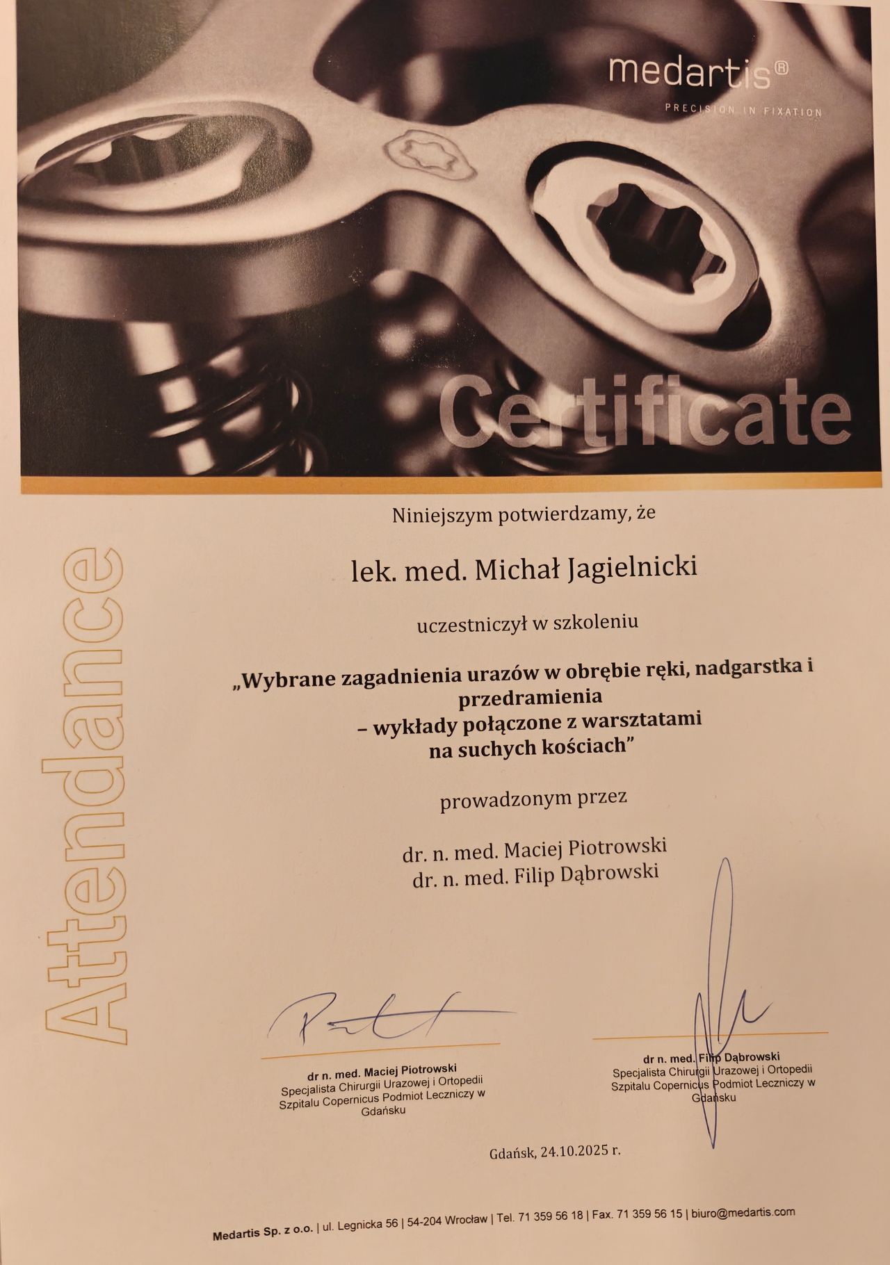 • Lekarz – Gdański Uniwersytet Medyczny; pracownik Kliniki Ortopedii i Traumatologii Narządu Ruchu WSzZ w Toruniu