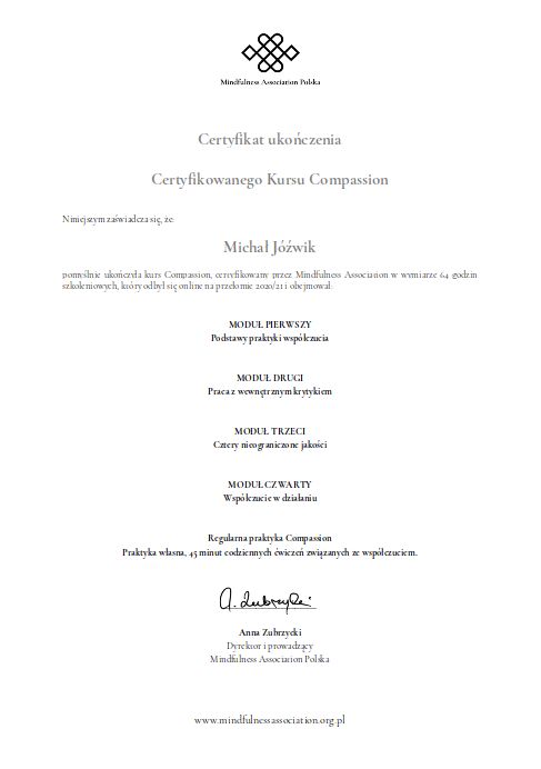 Polecam współpracę z Panem Michałem. Zawsze przygotowany do sesji, oferuje szeroki wachlarz ćwiczeń i zadań. Cierpliwy i wyrozumiały. W czasie gdy umarł mój Tata dostałam profesjonalne wsparcie od Pana Michała, za co jestem bardzo wdzięczna. Polecam z całego serca!