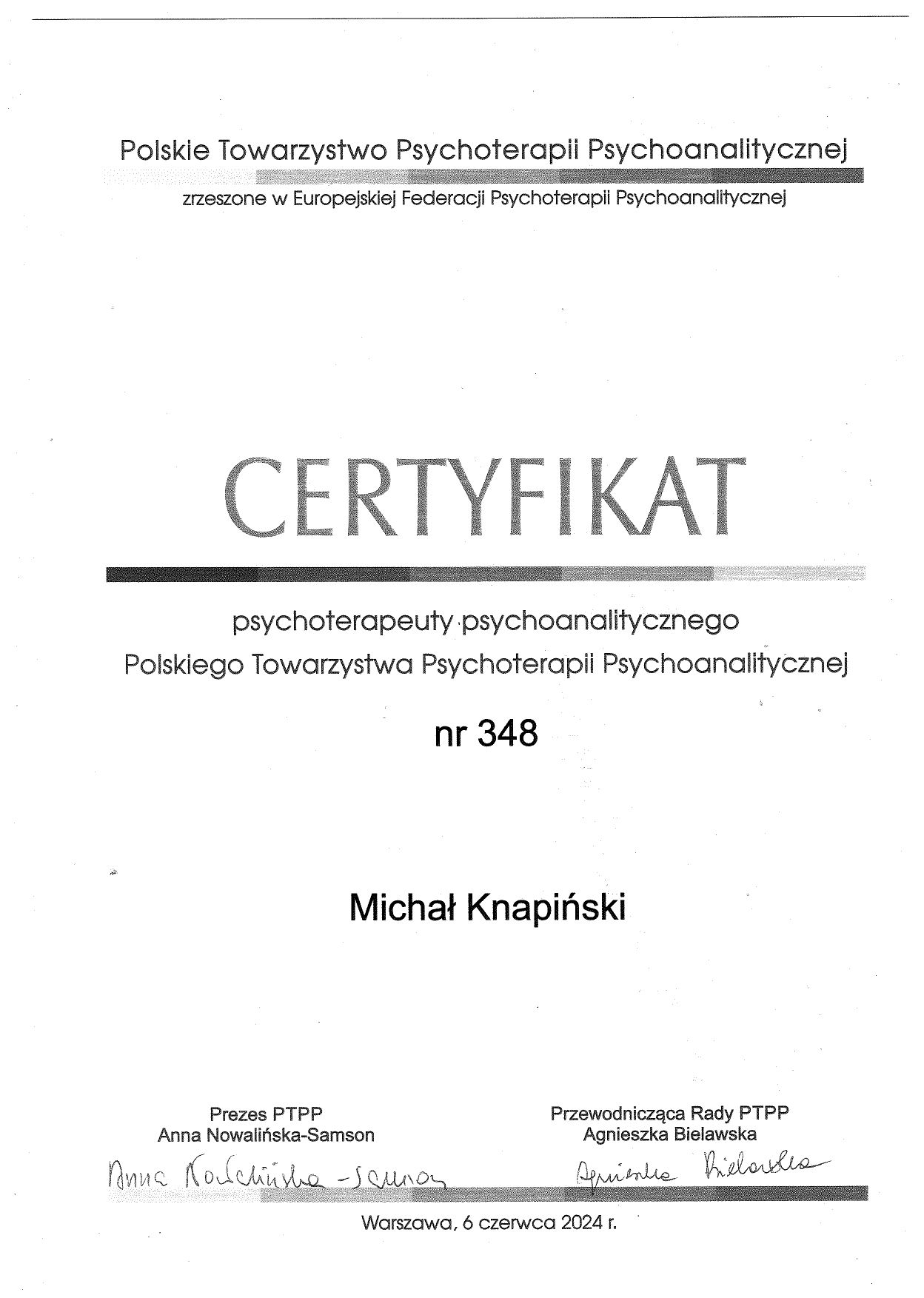 Jestem psychologiem ze specjalnościami: psychoterapia zaburzeń psychicznych i seksuologia kliniczna, certyfikowanym psychoterapeutą i Członkiem Zwyczajnym Polskiego Towarzystwa Psychoterapii Psychoanalitycznej. Doświadczenie zdobywałem zarówno w placówkach pracujących przy NFZ: na oddziałach szpitali psychiatrycznych (w Gnieźnie i Wrocławiu), Instytutu Zdrowia Psychicznego w Gorzowie Wlkp., Poradni Leczenia Uzależnień w Poznaniu, jak też w prywatnej pracy gabinetowej z pacjentami.