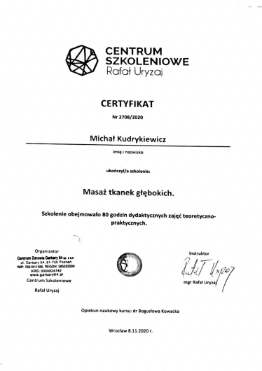 Dziękuję za zaufanie i pozytywną opinię. Cieszę się, że bark został wyleczony — życzę pomyślnego powrotu do treningów!