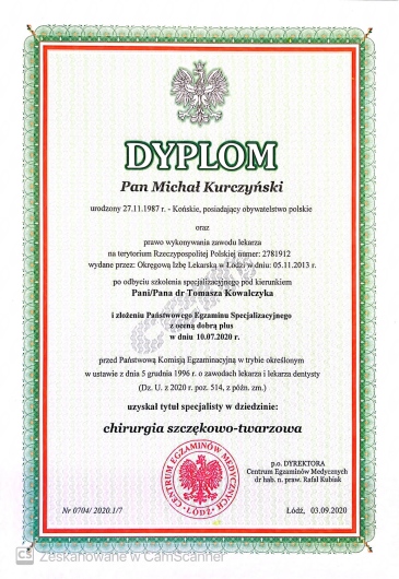 Jaki jest zakres porad oferowanych przez Michał Kurczyński?Michał Kurczyński to chirurg stomatologiczny, chirurg szczękowo-twarzowy. Na podstawie swojego doświadczenia i wykształcenia Michał Kurczyński oferuje usługi takie jak: chirurgia stomatologiczna, chirurgiczne usuwanie zębów, implanty, Konsultacja chirurgiczna, konsultacja implantologiczna, plastyka dziąseł, Wybielanie zębów, ekstrakcja zęba, konsultacja chirurga stomatologicznego, ekstrakcja ósemek.