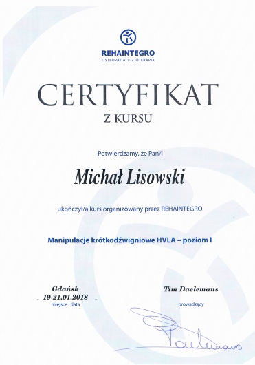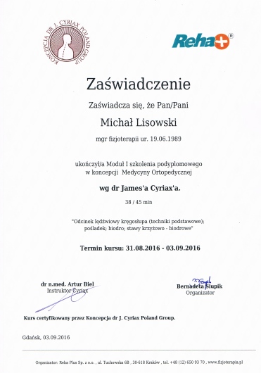 + Fizjoterapia - Michał Lisowski - właściciel, fizjoterapeuta 2017-2023