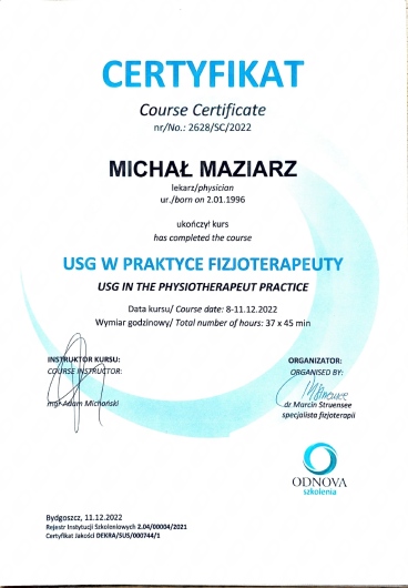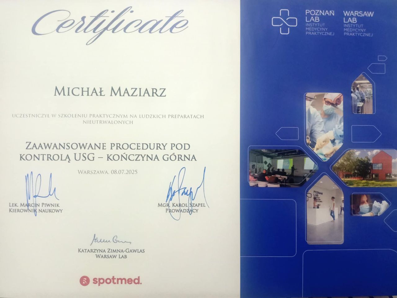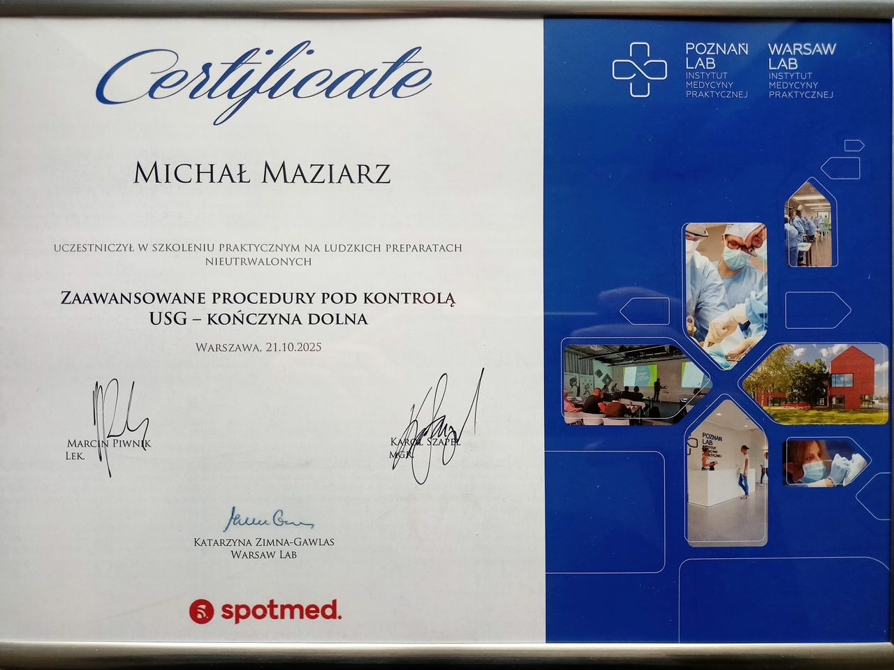 Jestem lekarzem na codzień pracującym w podstawowej opiece zdrowotnej, gdzie przyjmuje dzieci oraz dorosłych. Wykonuję badania USG oraz drobne procedury ambulatoryjne pod kontrolą ultrasonografii. Ciagle rozwijam się, uczestnicząc w kursach i szkoleniach z zakresu ultrasonografi. Moim zainteresowaniem sa zagadnienia z zakresu medycyny sportowej, rehabilitacji, fizjoterapii oraz ortopedii ambulatoryjnej.