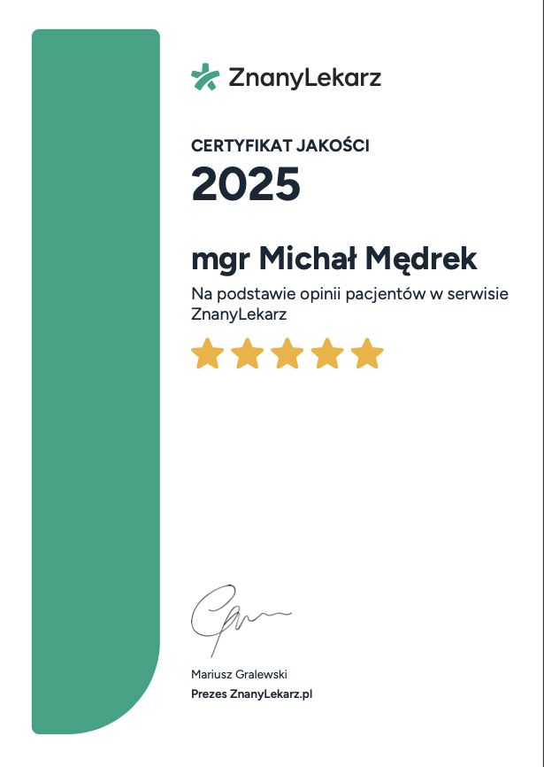 Ważne! Po umówieniu wizyty uprzejmie proszę o punktualność, spóźnienia powyżej 15 minut są uznawane jako nieobecność.