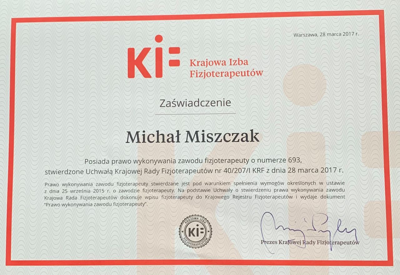 Polecam serdecznie, Pan Michał podchodzi do pacjenta bardzo profesjonalnie dokładnie przestawia plan działania i szczegółowo omawia każde ćwiczenie. Z każdą wizytą ból oraz napięcia stają się coraz mniejsze, a ja wracam do regularnego treningu.
