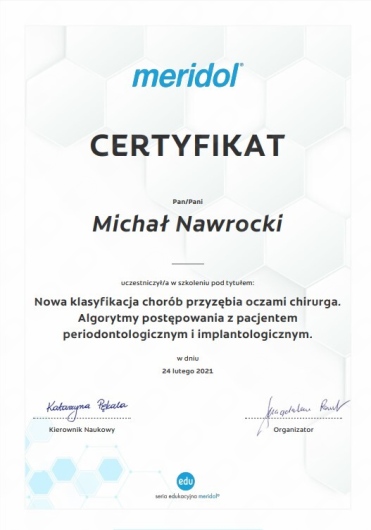 Bardzo polecamy Pana lekarza stomatologa Michała Nawrockiego, wszystko dokładnie wyjaśnił i doradził w sympatycznej atmosferze oraz wyrozumiały dla potrzeb osoby niepełnosprawnej.